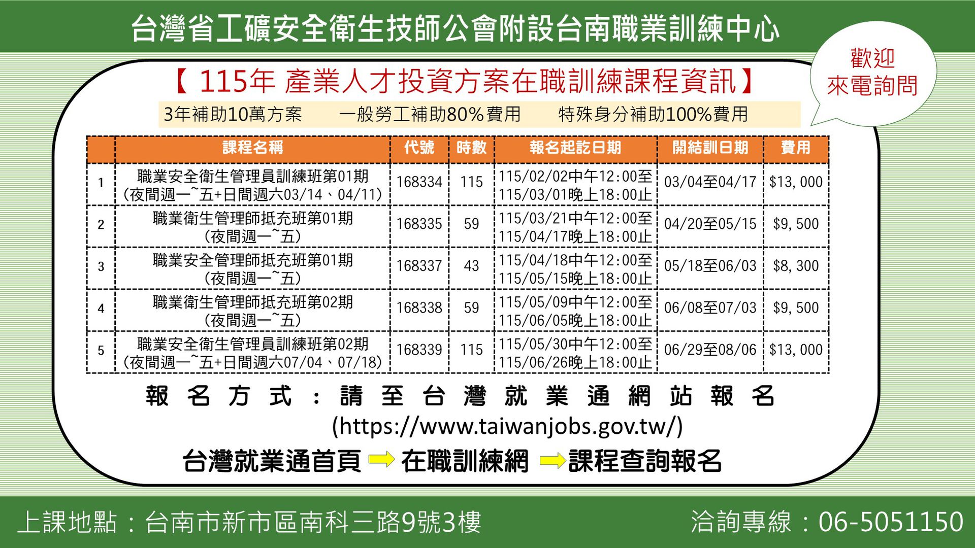 程相關事宜歡迎來電06-5051150諮詢